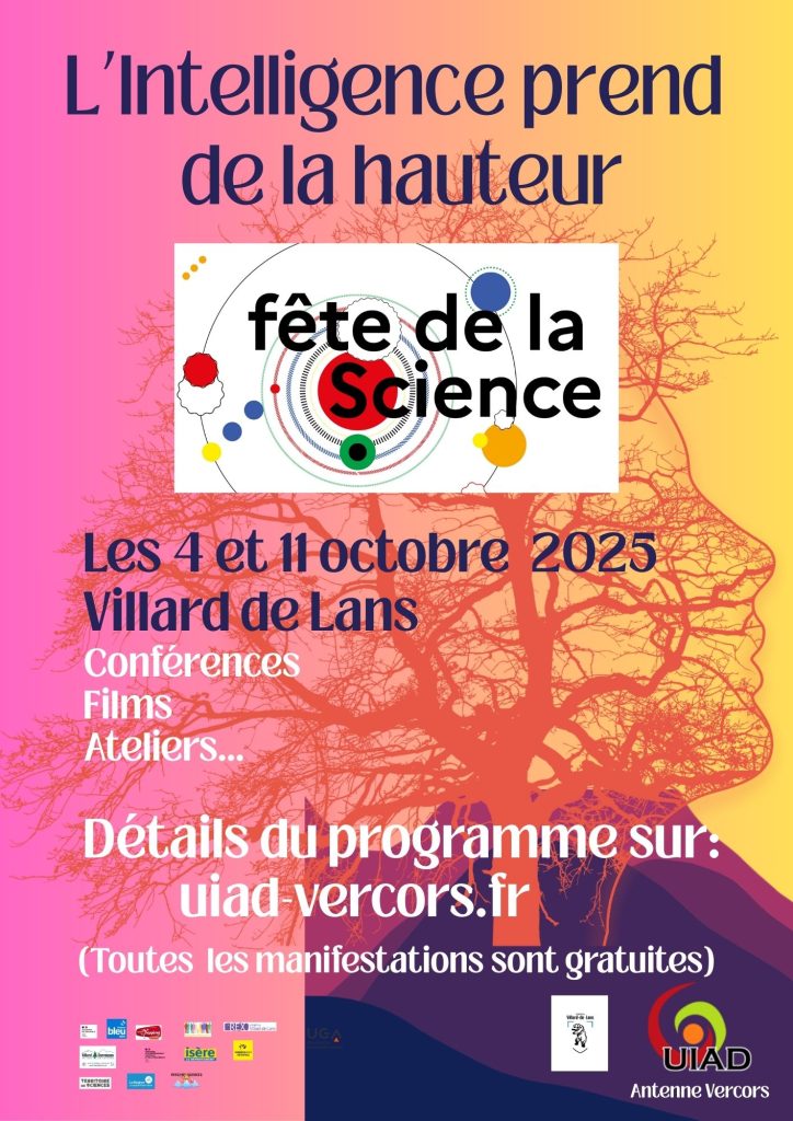 FÊTE DE LA SCIENCE Thématique 2025 : “INTELLIGENCE(S)” Retrouver des conférences, des films, des ateliers… les 4 et 11 octobre 2025 à Villard-de-Lans Détails ci-dessous et sur : uiad-vercors.fr (GRATUIT)