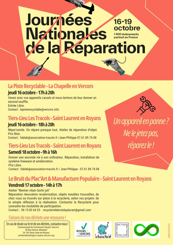 Dans le cadre des Journées Nationales de la Réparation, Venez réparer vos appareils en panne…