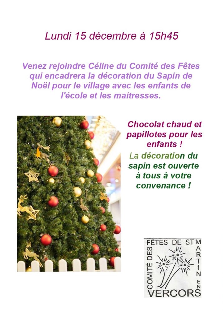 DÉCORATION DU SAPIN-LUNDI 15 DÉCEMBRE-15h45-LAVOIR