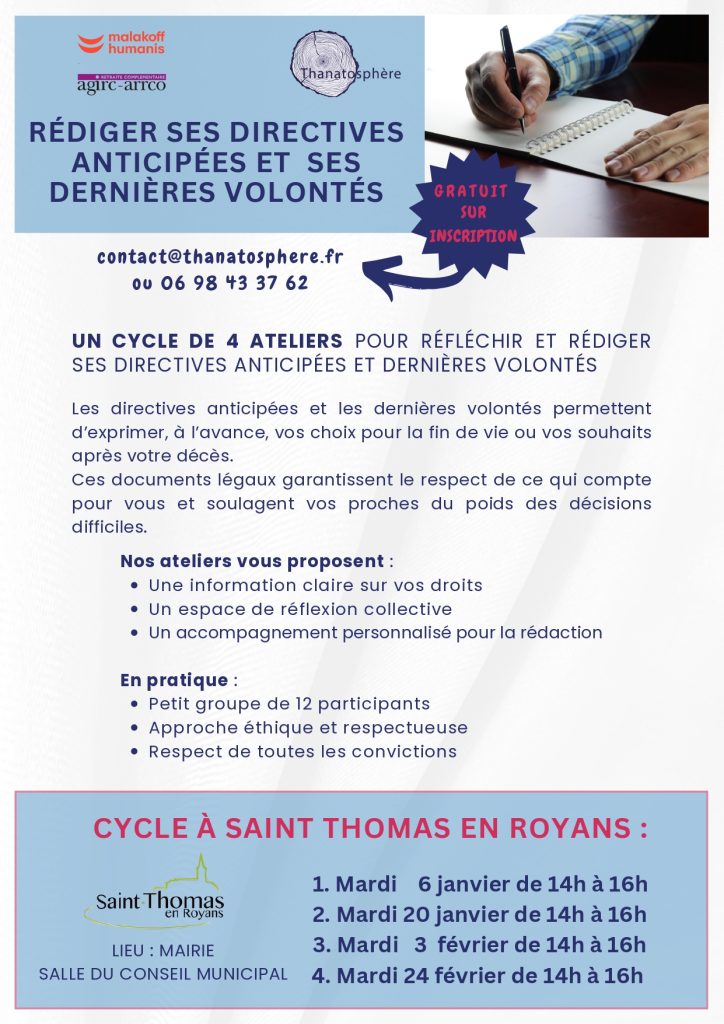 “ENSEMBLE PRÉPARONS NOS CHOIX” L’association Thanatosphère organise un cycle de 4 ateliers gratuits dans les…