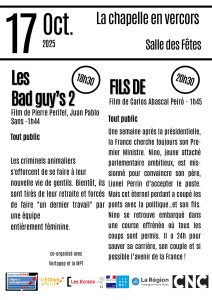 2 séances de cinéma à La Chapelle-en-Vercors (Salle des Fêtes)