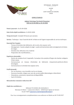 OFFRE EMPLOI SAINT-AGNAN-EN-VERCORS