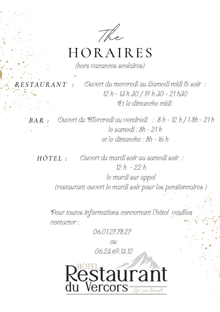 HORAIRES RESTAURANT, BAR ET HÔTEL DU VERCORS