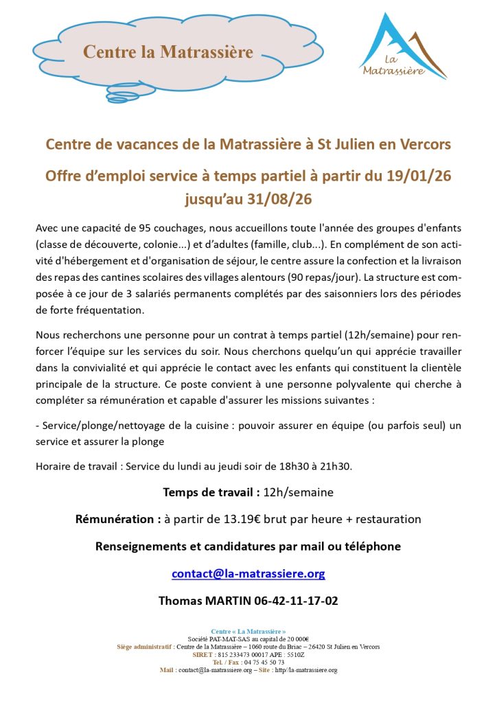 Deux offres d’emploi CDD de 8 mois janvier à août -> une…