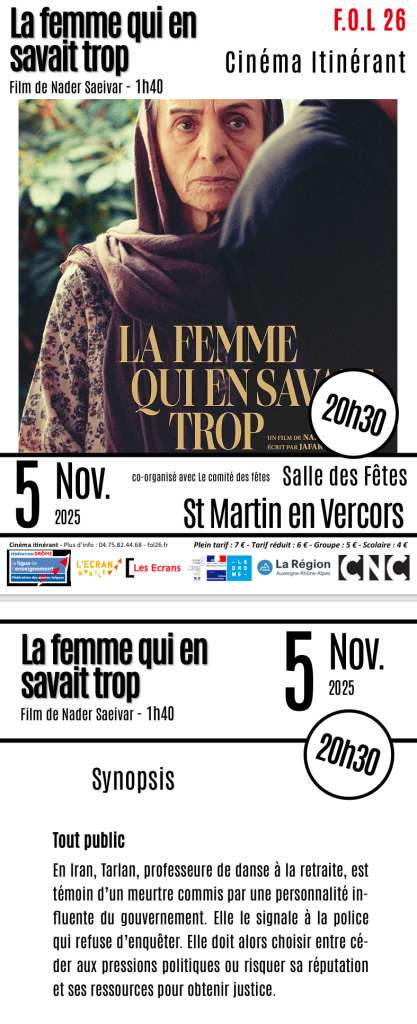 🎬 CINÉMA ST MARTIN-5 NOVEMBRE-SÉANCE A 20H30 🎬