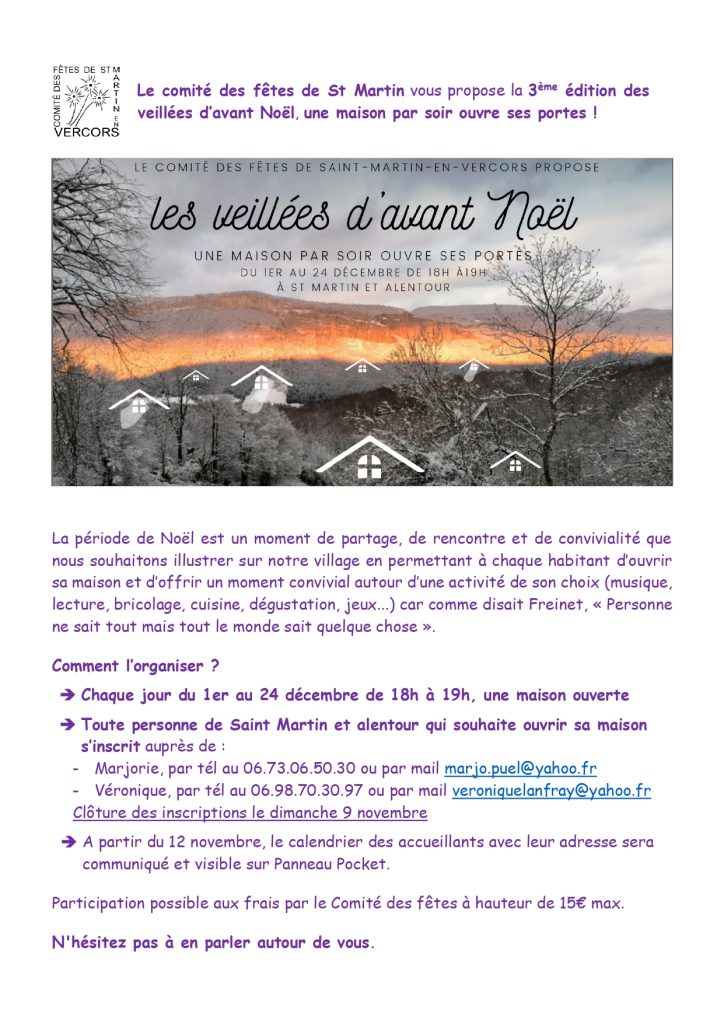 Le Comité des Fêtes de Saint-Martin-en-Vercors propose : 🎄 LES VEILLÉES D’AVANT…
