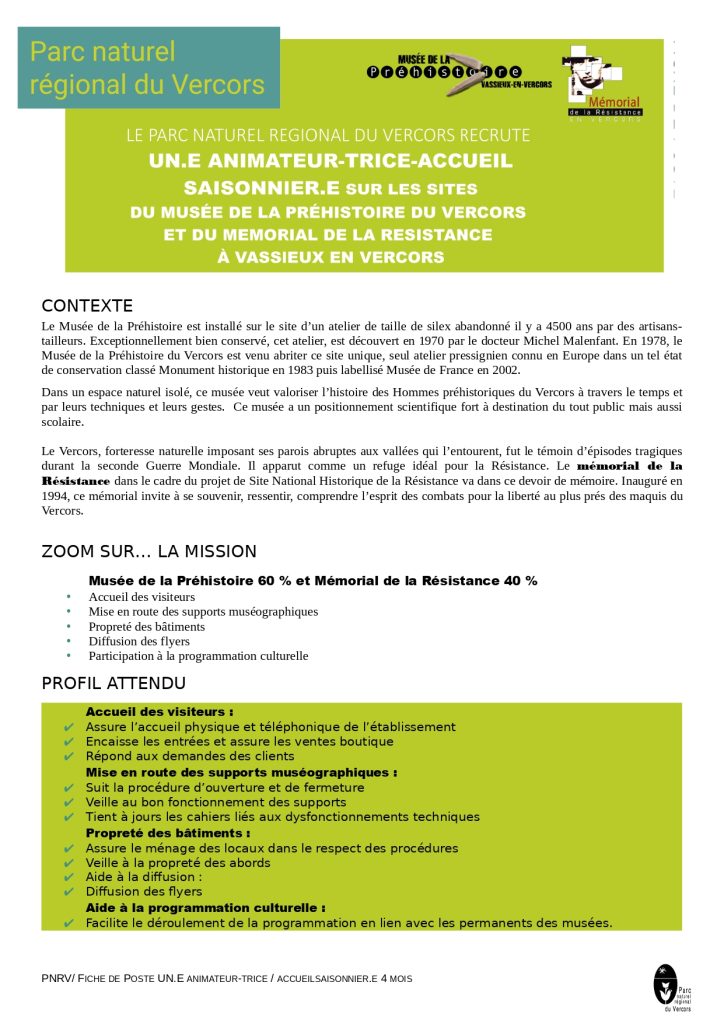 Lieu : Vercors – Rencurel Période : Mai à Octobre Contrat saisonnier…