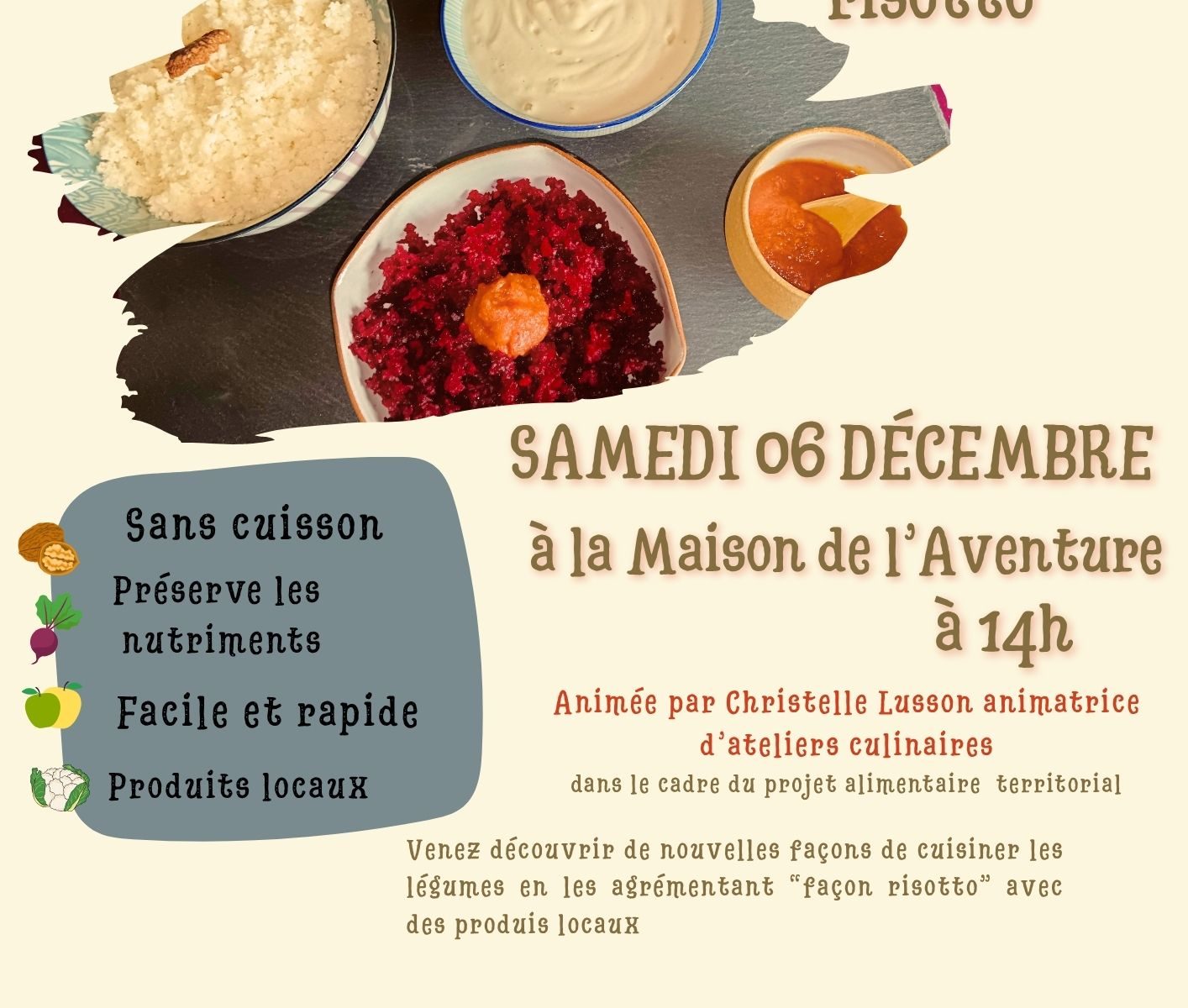 Dans le cadre du Projet Alimentaire Territorial, venez découvrir de nouvelles façons de cuisiner les légumes !