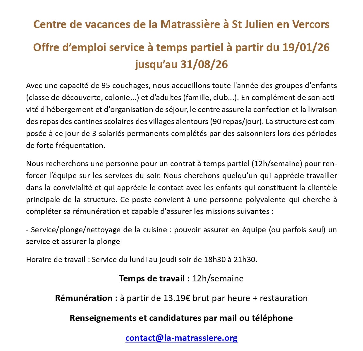 Deux offres d’emploi CDD de
