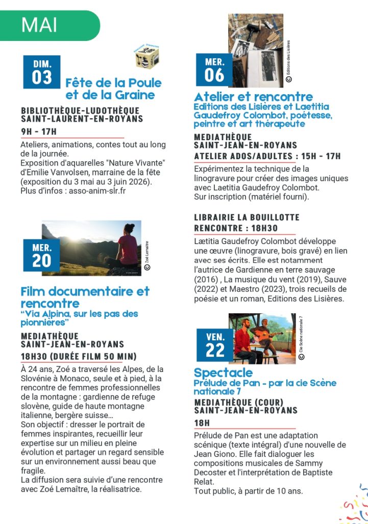 VOUS TROUVEREZ CI-DESSOUS LE PROGRAMME DES MÉDIATHÈQUES POUR MAI 2026